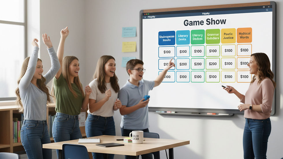 Game Show: Create a Jeopardy!-style board to review a novel before a big test. Categories could include "Characters," "Plot Twists," or "Vocabulary."